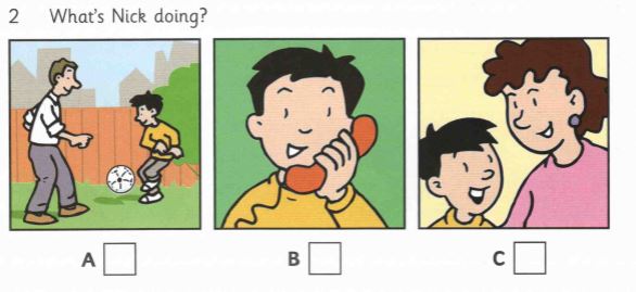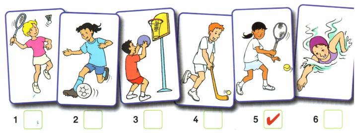 III. Listen and tick ( ) the sports Bill likes, cross () sports he doesn’t like. IV. Listen then write the name or number (02 examples) - What the boy’s name? ........................Sam................ - How old is he? ..........................10................. 1. Which class is Sam in ........................................... 2. What’s the of the teacher? ........................................... 3. Who sit next to Sam in the class? ........................................... 4. How many books are there in Sam’s bag? ........................................... 5. How old is Sam’s sister? ........................................... B. READING AND WRITING I. Look at the picture and circle suitable words.