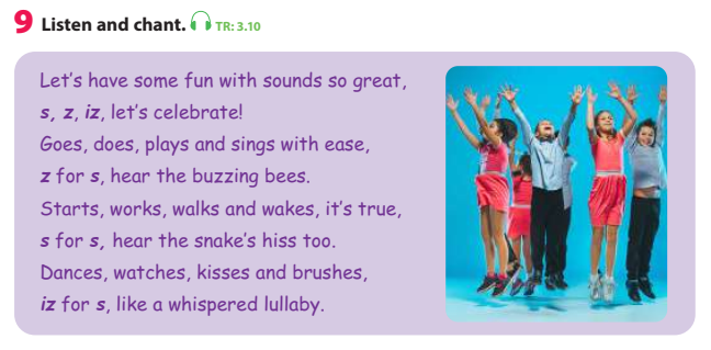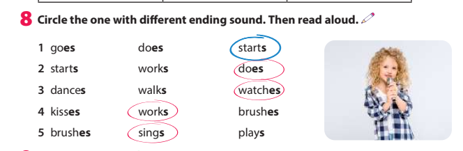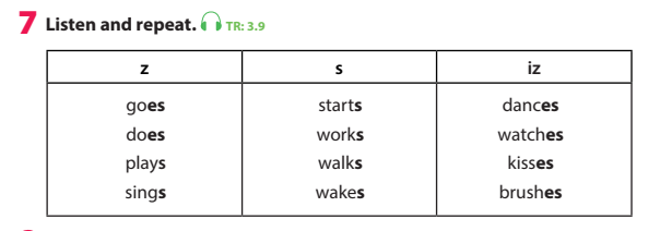 - practice pronouncing verbs ending in /-s/ and /-es/.