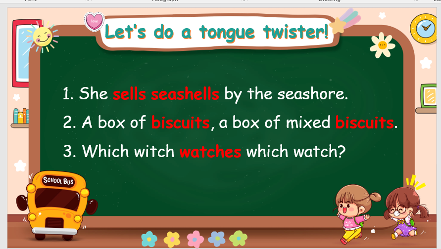 - Assessment: Do the activity “tongue twister”.