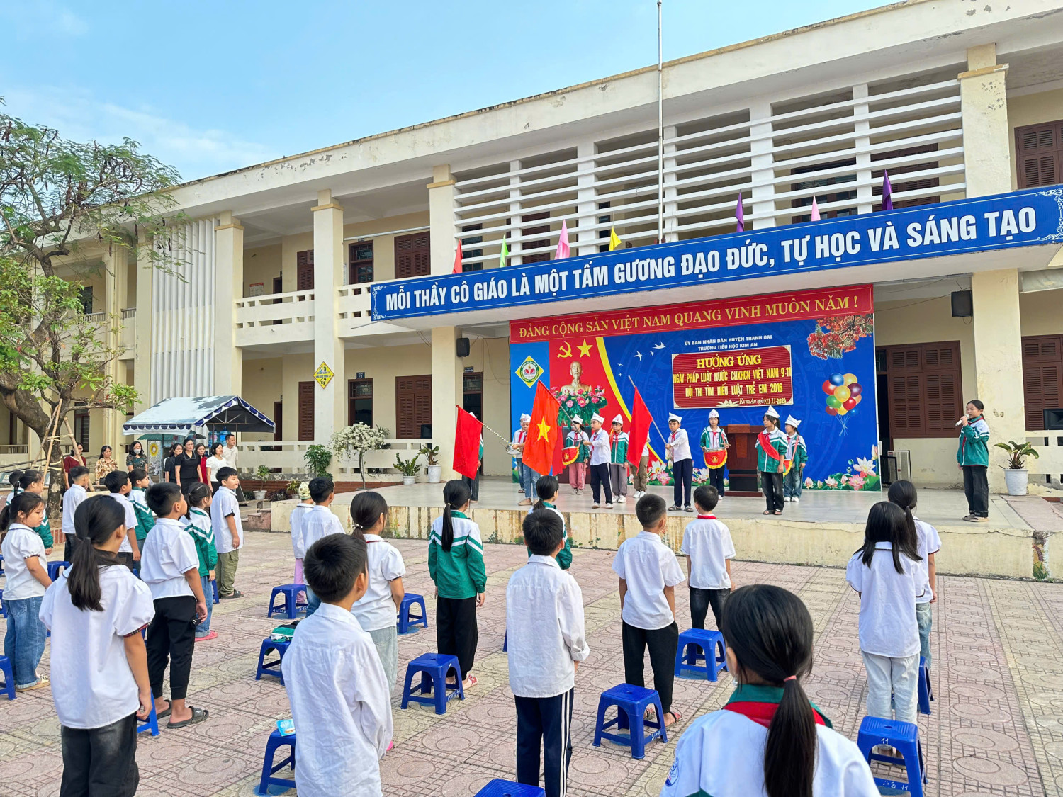 Trong buổi lễ phát động Ngày Pháp luật nước CHXHCN Việt Nam năm nay, cô giáo Nguyễn Thị Hồng Nga - Hiệu trưởng