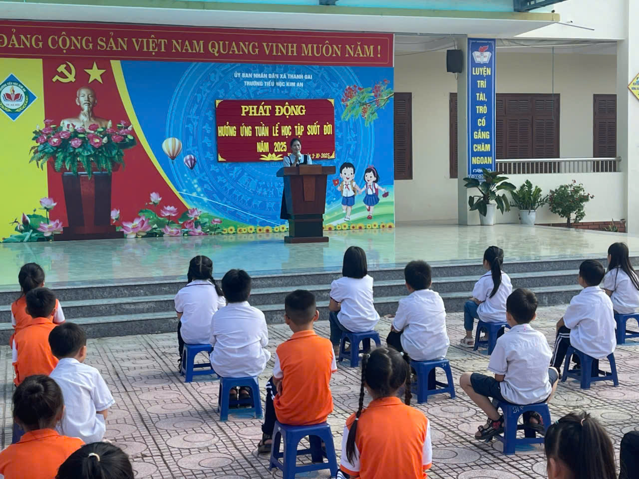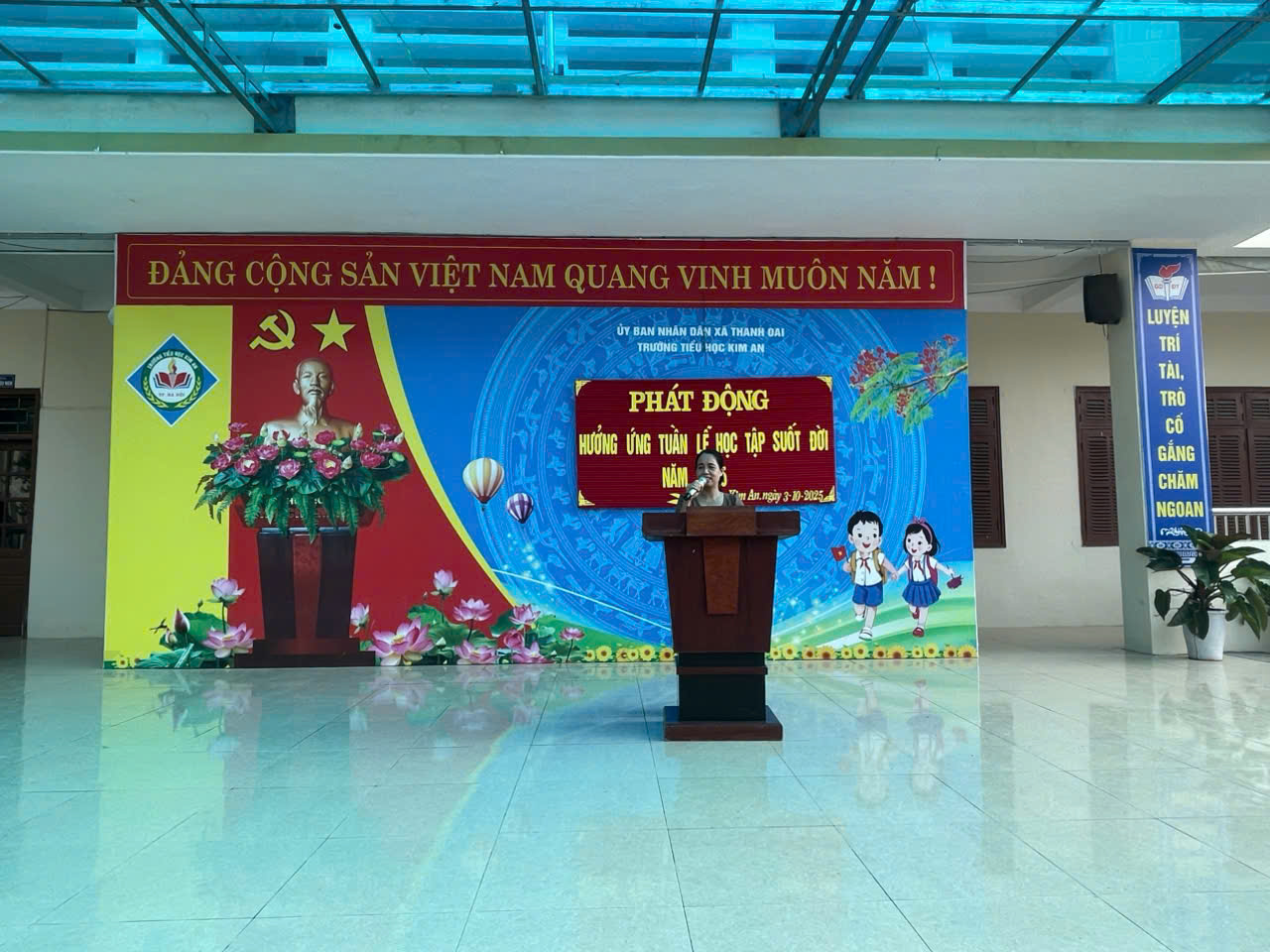 Hưởng ứng phong trào xây dựng xã hội học tập, sáng ngày 8 tháng 10 năm 2025, trường Tiểu học Kim An long trọng tổ chức Lễ phát động “Tuần lễ hưởng ứng học tập suốt đời” với không khí trang trọng, phấn khởi và đầy ý nghĩa.